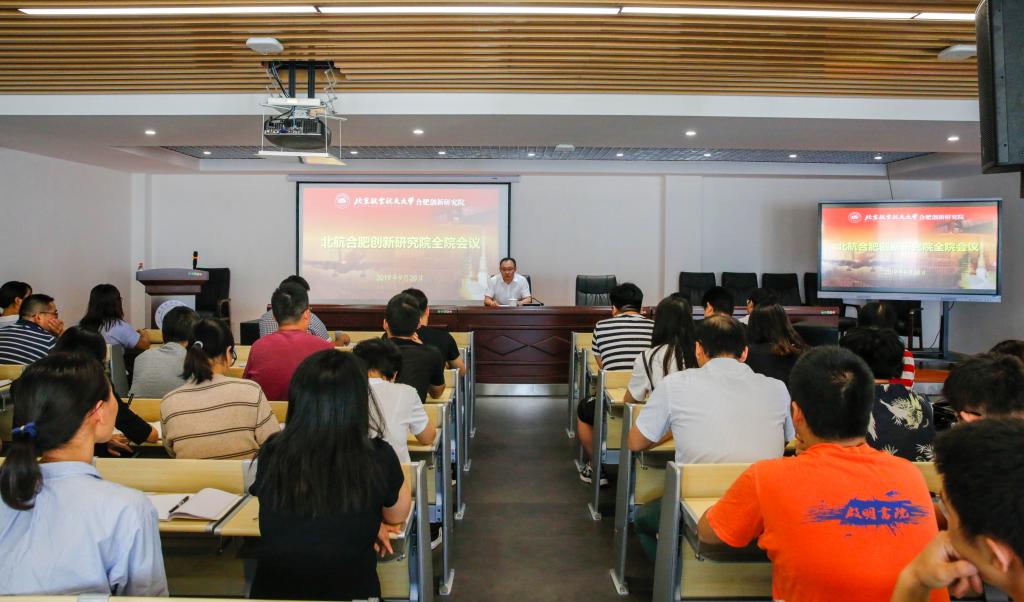 执行院长梁国栋首先传达了曹淑敏书记和徐惠彬校长在学校暑期工作会上的重要讲话精神,同时结合工作实际,分析了研究院下半年工作的主要任务和工作思路,强调研究院下半年要以“挖井见水”的执着精神将各项工作落到实处,在做好基建、科研、产学研合作、高端人才引育等业务工作的同时,按照学校党委和新站区社会事业党委要求和部署,以开展“不忘初心、牢记使命”主题教育为契机,全面加强党组织建设。副院长汪作来传达了合肥市和新站区关于防范化解重大意识形态风险隐患的工作要求,并结合近期社会热点事件做了社情舆情分析。最后,全体师生共同观看了爱国主义教育电影《港珠澳大桥》。